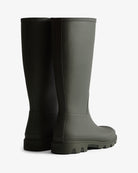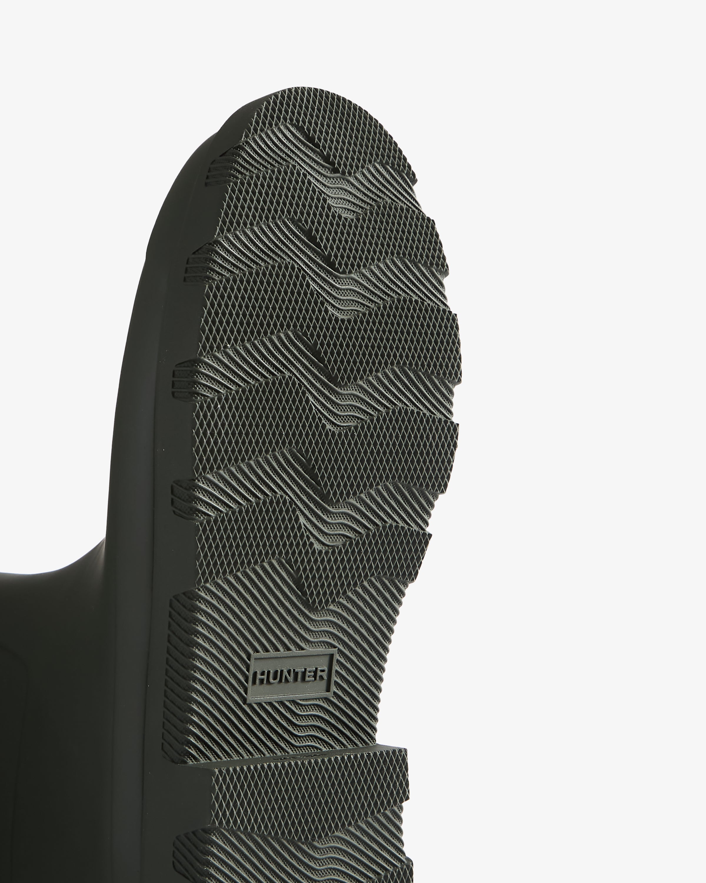 Introducing the newest addition to the Hunter family, our fully waterproof Men's Downpour Tall Boot. With a sleek upper design and a lightweight moulded outsole, the unique tread has taken influence from natural shapes found in landscapes. Handcrafted and finished with a heritage topbind, this men's green riding boot has been engineered to have a more modern and voluminous calf fit.