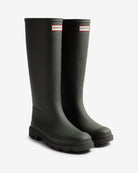 Introducing the newest addition to the Hunter family, our fully waterproof Women's Downpour Tall Boot. With a sleek upper design and a lightweight moulded outsole, the unique tread has taken influence from natural shapes found in landscapes. Handcrafted and finished with a heritage topbind, this women's black riding boot has been engineered to have a more modern and voluminous calf fit.